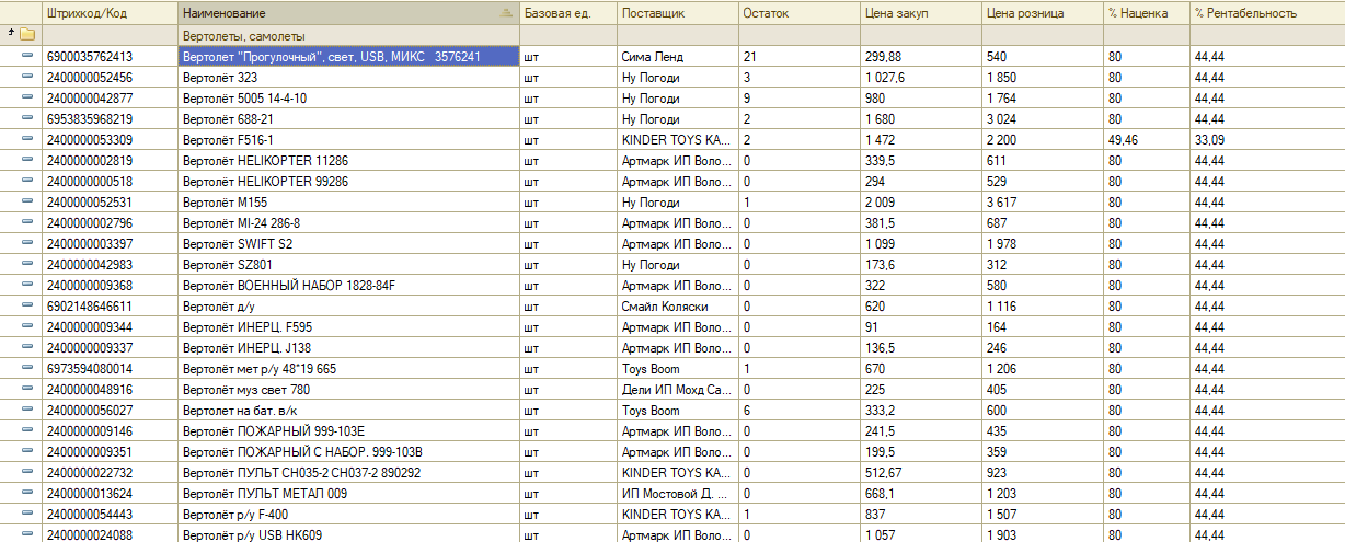 Колонка Поставщик - последний поставщик от которого приходила номенклатура.