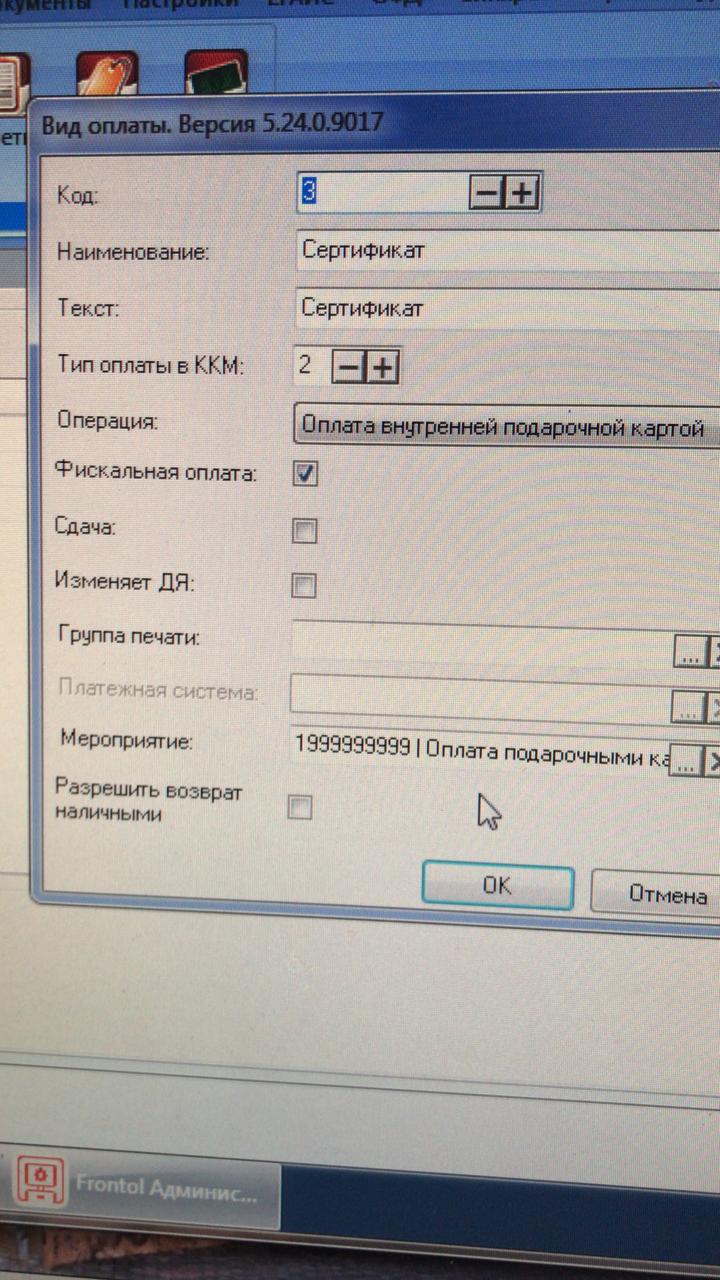 Настроить оплату чека по сертификату фронтол 5.24, сертификаты прогружаются через Далион