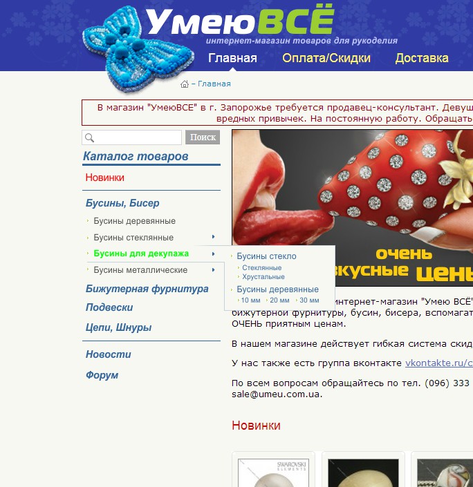 - Первый пункт Новинки, выделить красным, это отдельно созданная страница на сайте