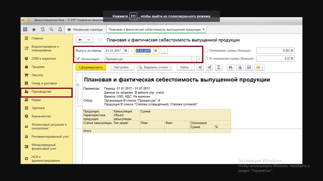 2. Рисунок "Плановая и фактическая себ-ть прод-и": Необходимо сформировать отчёт. Сейчас данные отсутствуют, их нужно добавить.