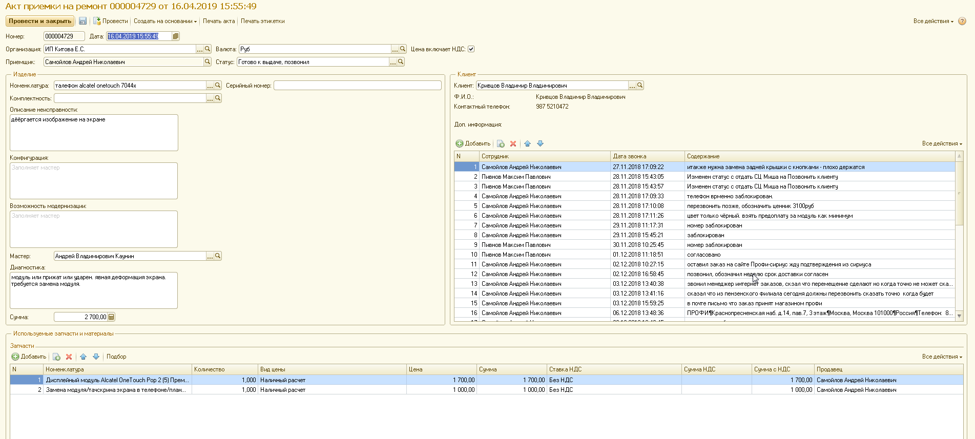 Доработать дописанную обработку сервис центр в УТ 8.3