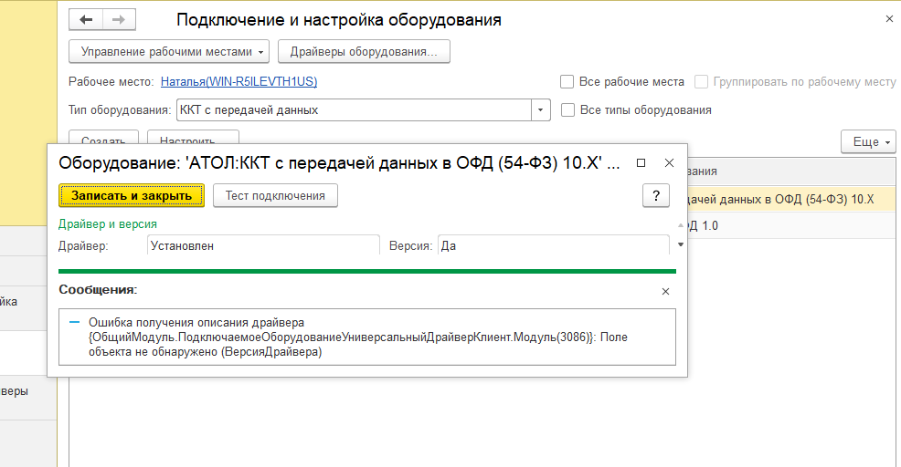Подключаем онлайн кассу Атол Ф20 к 1С столкнулись с проблемой при создании подключаемого оборудования - при установке драйвера ошибка "ошибка получения описания драйвера" Поле объекта не обнаружено