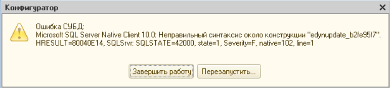 Обновляем ИБ путем накатывания свежего cf (нет возможности пройти все обновления). При попытки сохранения обнвления получаем ошибку. Необходимо разобраться и устранить ошибку.