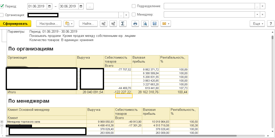 Нужен отчет для Управление торговлей, редакция 11 (11.4.5.41) который выводит валовую прибыль...