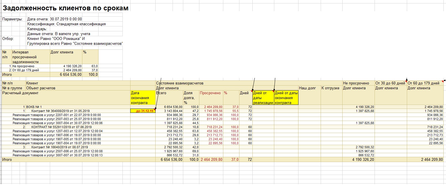 Доработка отчёта "Задолженность клиентов по срокам" в КА 2.4.