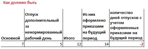 Требуется создать отчёт на основе кадрового отчёта "Остатки отпусков (кратко)", но необходимо добавить несколько столбцов. Первый столбец называется "Из них оформлено приказами на будущий период", он отображает дни отпуска оформленные документом "Отпуск" И начало отпуска находится в будущем месяце относительно даты формирования отчёта. Если же отчет формируется в том же месяце, что и начало отпуска или во время наступившего отпуска или документ "Отпуск" не оформлялся, то данный столбец будет пустым. Второй столбец называется "Итого количество дней отпусков с учетом оформленных приказами на будущий период". Он считается так, Столбец основного отпуска + доп. отпуск (эти данные совпадают со столбцами из отчета "Остатки отпусков (кратко)") - "Из них оформлено приказами на будущий период". Если же отчет формируется в том же месяце, что и начало отпуска или во время наступившего отпуска или документ "Отпуск" не оформлялся, то данный столбец будет пустым. Отчёт необходимо добавить через внешнюю обработку. Пример столбцов по одному сотруднику приведен во вложенном файле. Соответственно отчет должен включать возможности как и в кадровом отчёте "Остатки отпусков (кратко)".