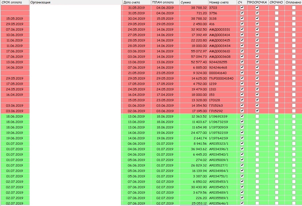 Красный – когда счет просрочен