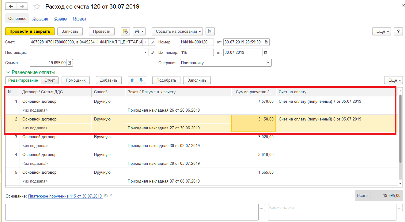 Номер счета = НомерВходящегоДокумента