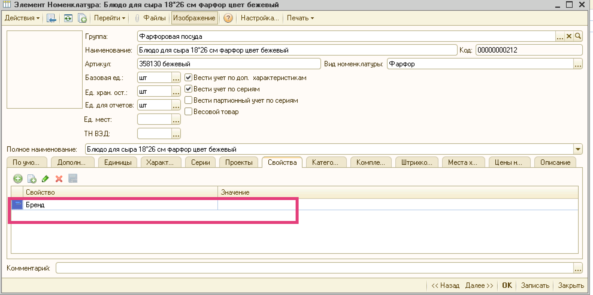 Колонка Бренд – заполнить свойство бренд значением из экселя. Если такого значения в 1С нет, предварительно добавить.