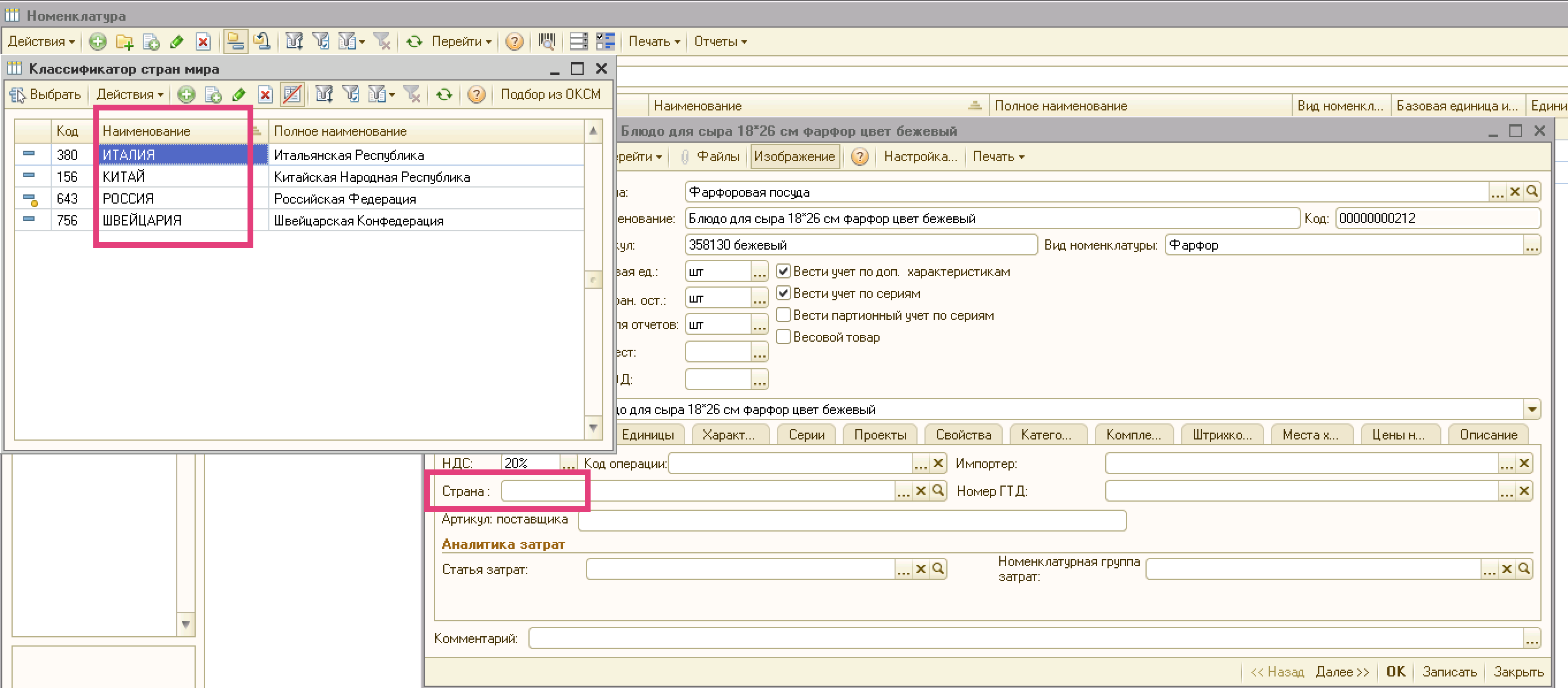 Колонка Страна Происхождения – по наименованию, если есть в классификаторе. Если нет такого наименования, то не заполнять это поле, выдав ошибку в терминальное окно.
