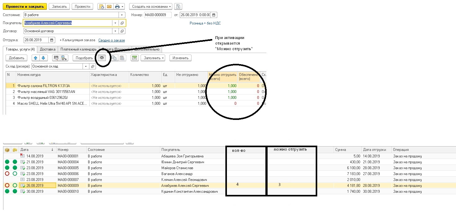 В УНФ в списке Заказа покупателя добавить дополнительный табличный список