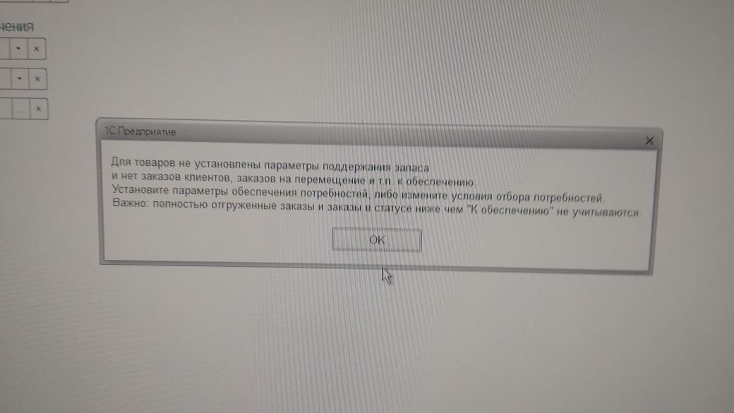 При попытке сформировать заказ по потребностям вылезает окно (фото прилагается)