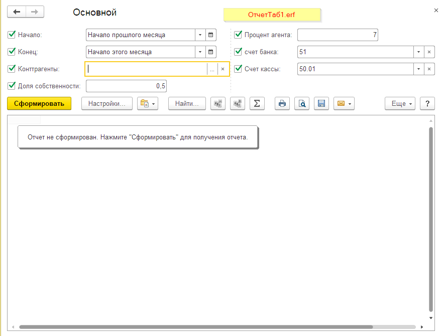 Отчет на СКД для таблицы из раздела 1: ОтчетТаб1.erf