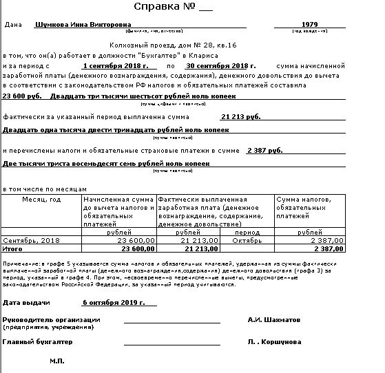 Справка о среднем заработке