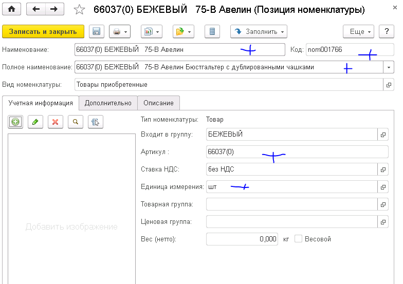 При загрузке номенклатуры перезаписываем своими новыми данными, ключевое поле GUID. Основные реквизиты (код, артикул, наименования и пр.), свойства и штрихкоды. Вид номенклатуры берем из настройки. При перезаписи восстанавливаем иерархию, владельца штрихкода и т.д., но не удаляем уже назначенные штрихкоды и доп. свойства. Если родителя нет, то устанавливаем выбранный в настройках.