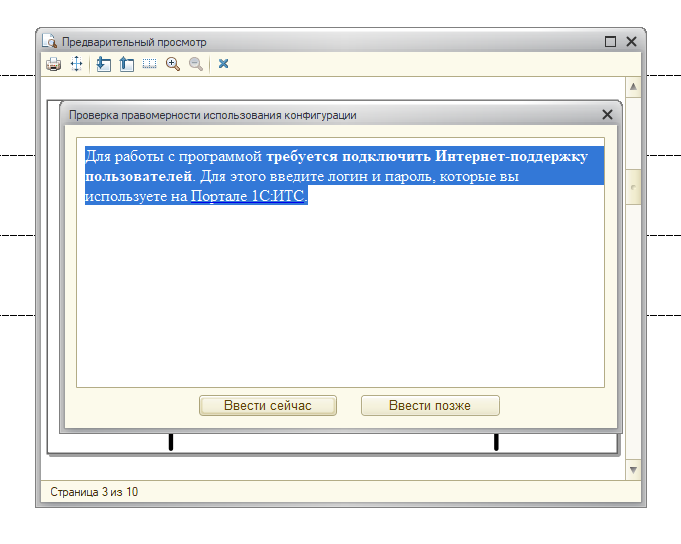 "Для работы с программой требуется подключить Интернет-поддержку пользователей. Для этого введите логин и пароль, которые вы используете на Портале 1С:ИТС." (скрин во вложении)