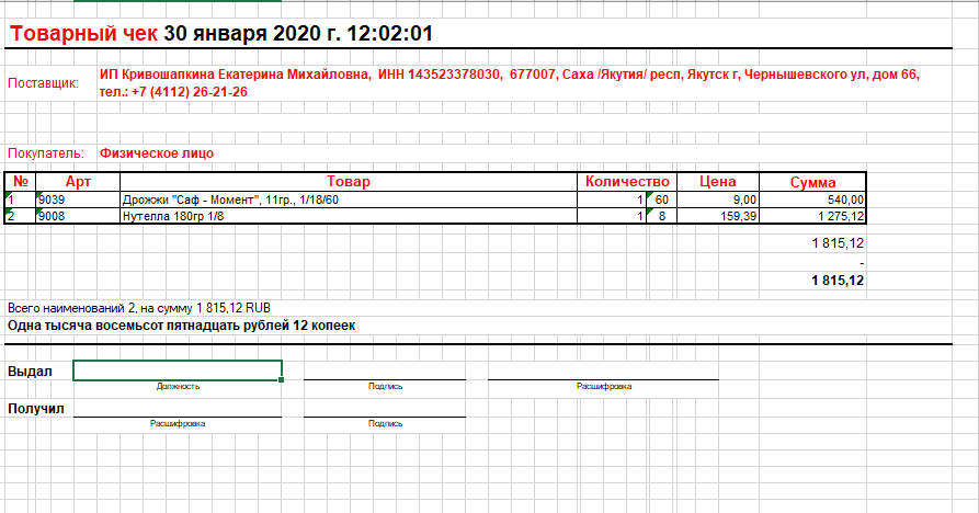 Товарный чек в ЧЕКах ККМ, с указанием цены за 1 шт (1С УНФ)
