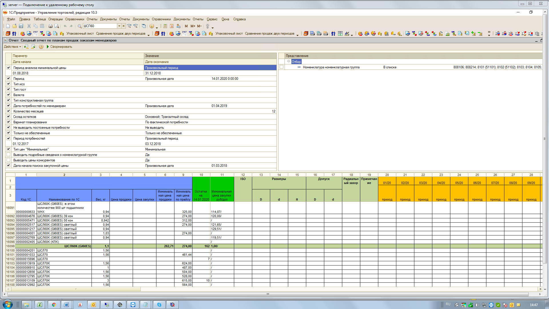 Нужно внедрить автоматическое планирование производства и закупки подшипниковой продукции.