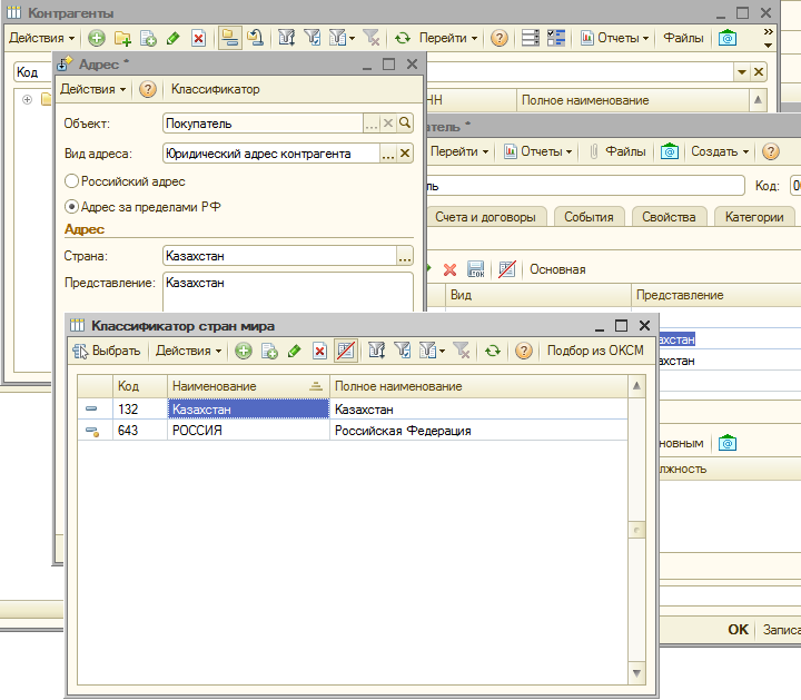 По поводу страны в адресе. См. картинку во сложении. Насколько я понимаю это справочник "КлассификаторСтранМира"