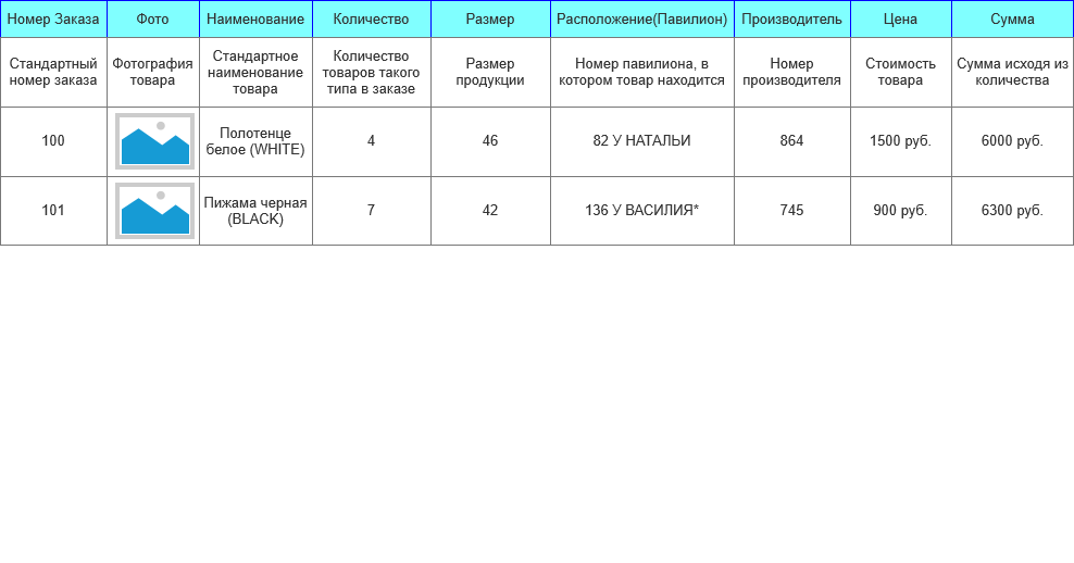 • Сумма – общая сумма товаров