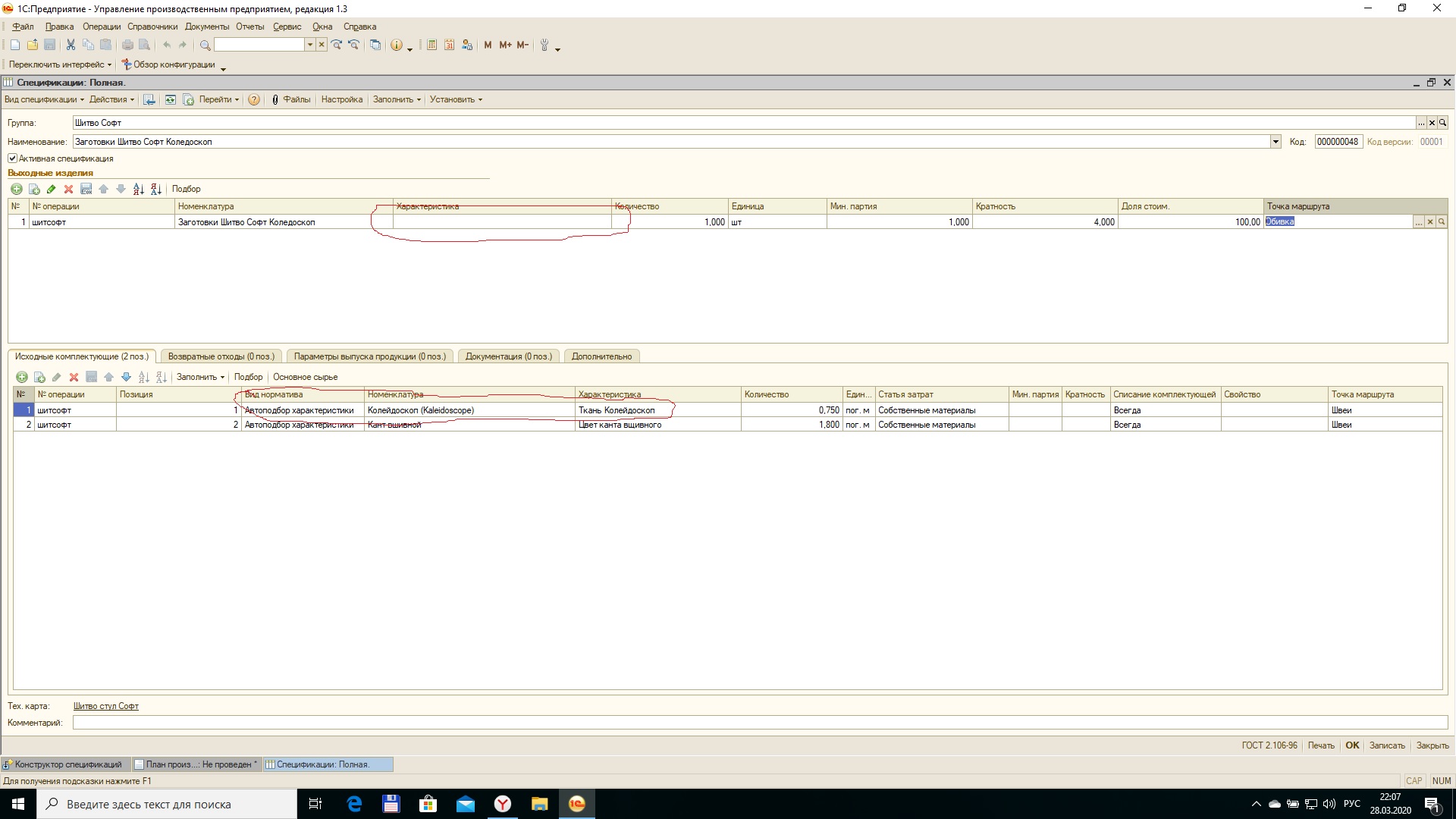 1с упп. При формеровании документа план производства по сменам не заполняются характеристики в закладке занятость рабочих центров.фото во вложении.