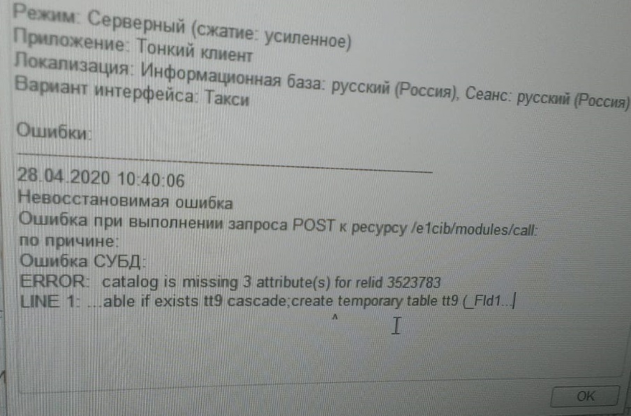 После перехода с файловой версии 1С 8.3 на сетевую, с использованием СУБД PostgreSql, начали возникать ошибки при выполнении разнообразнейших действий (см. Скрин).