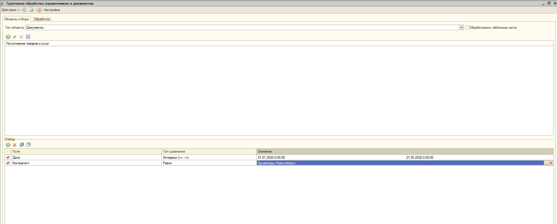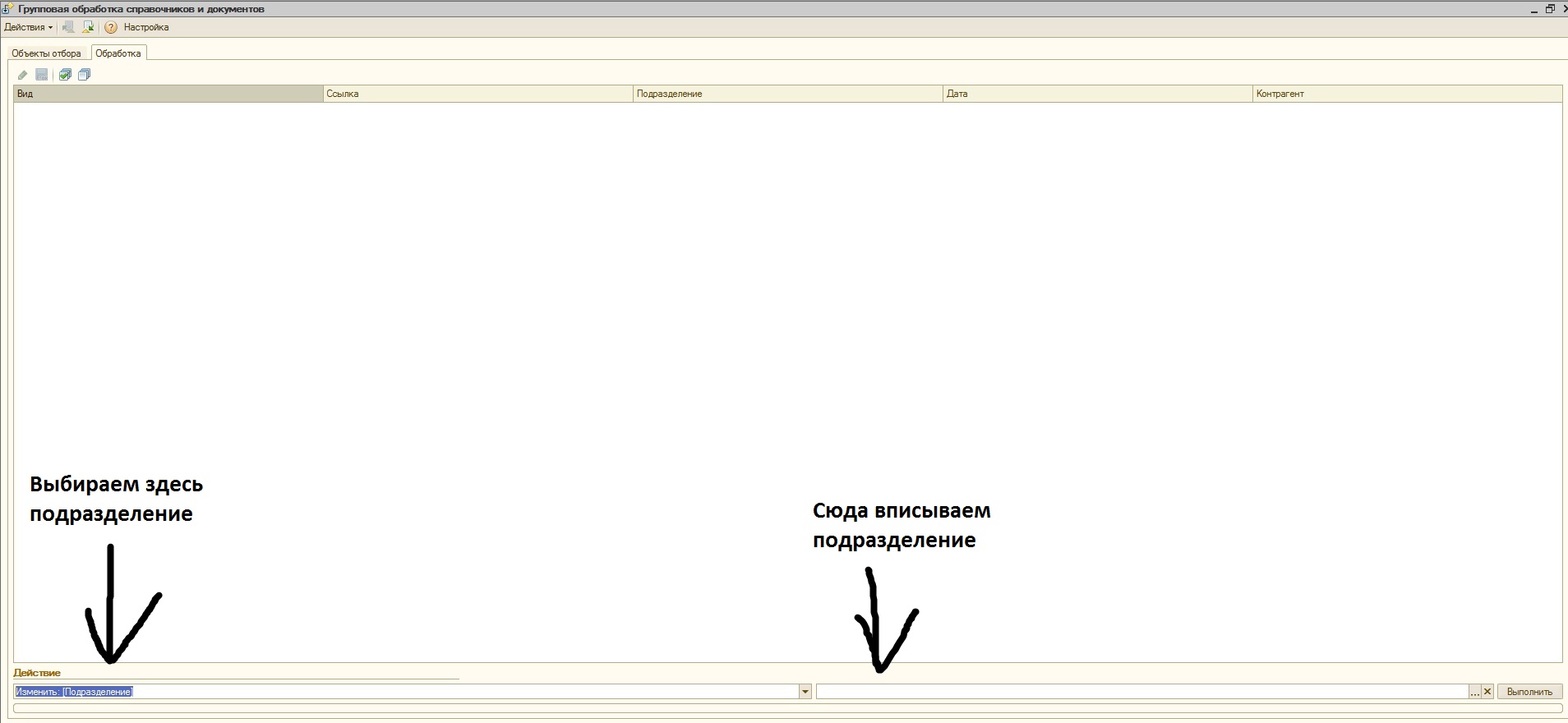 1. В задаче №1 нужно сделать так, чтобы была возможность пакетно менять подразделение во вкладке "Услуги" в документах "Поступление товаров и услуг"