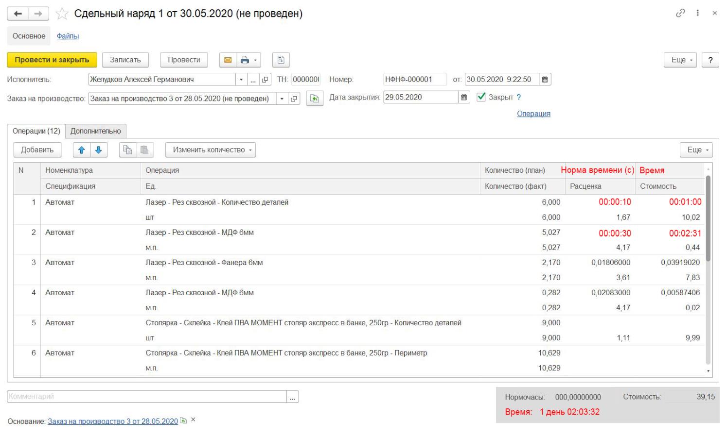 3. В сдельном наряде так же добавляем эти данные и общую сумму снизу. Изображение 03