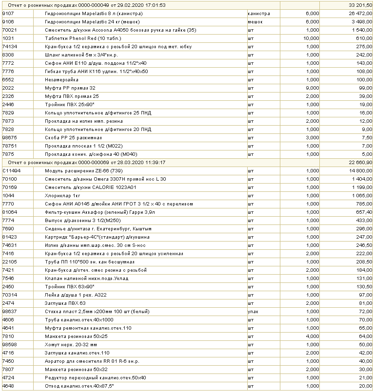 Требуется в отчете по продажам ТМЦ в типовой 1С7.7 ТиС при детализации по дням оформить вывод информации вертикально (листингом) , с выводом отдельными столбцами кода и артикула.