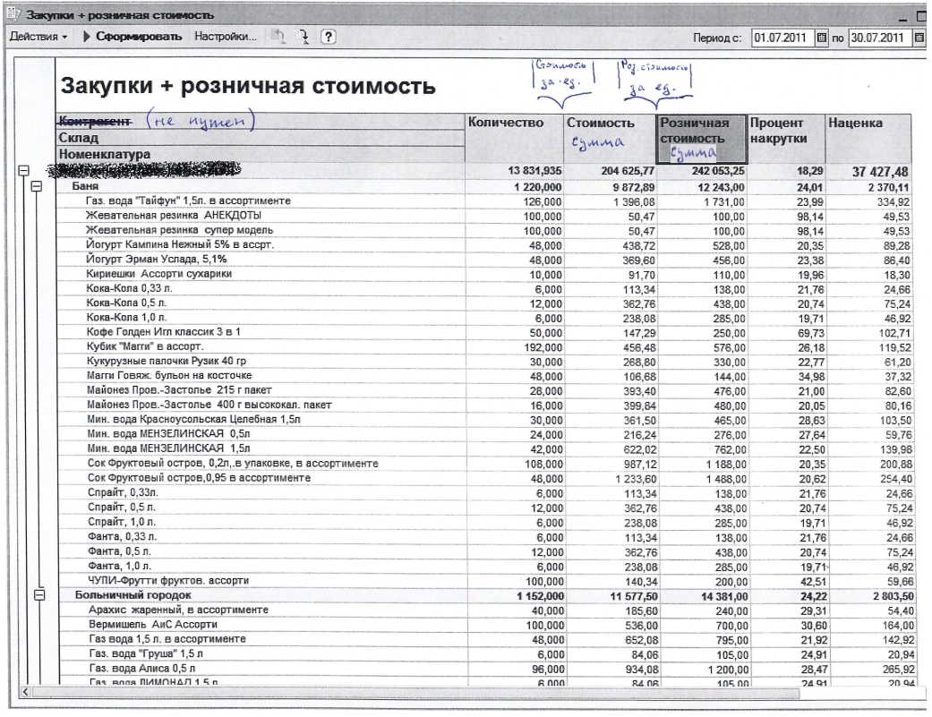 Отчет Закупки + розничная стоимость для УТ 11.4