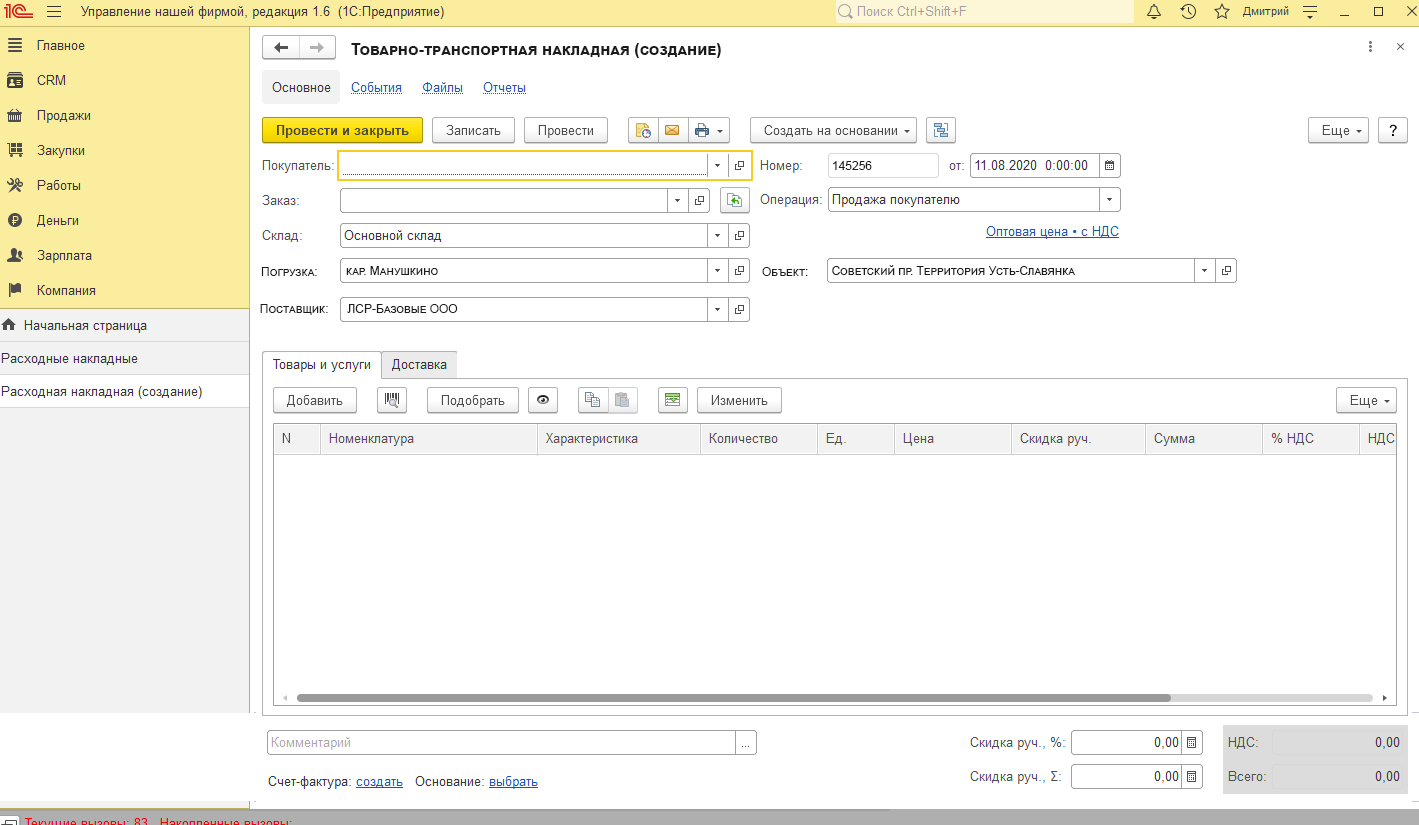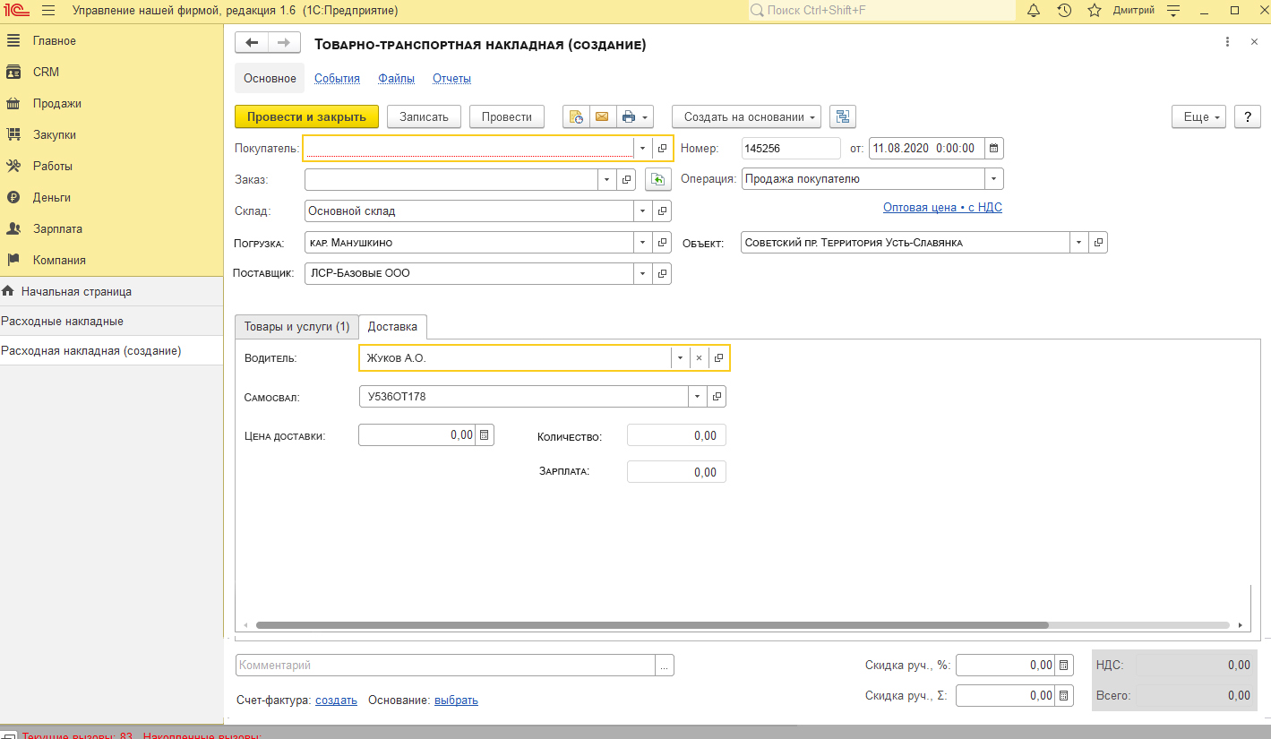 Нужно добавить новый документ-форму для заполнения данных с ТТН.