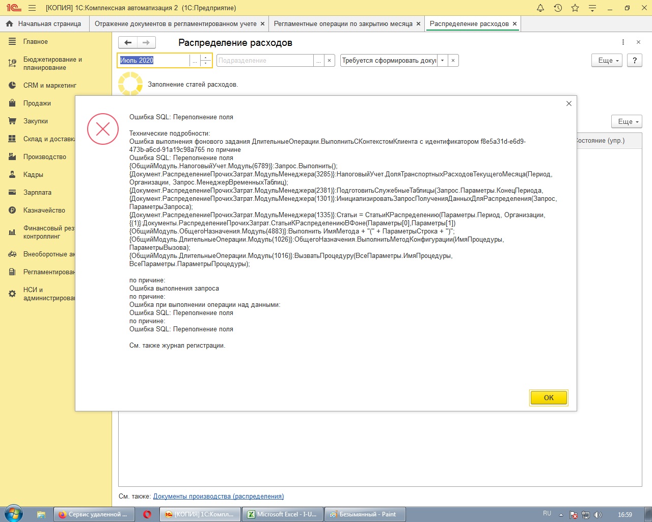 При выполнении Регламентные операции по закрытию месяца -> Настройка распределения расходов и др операциях.