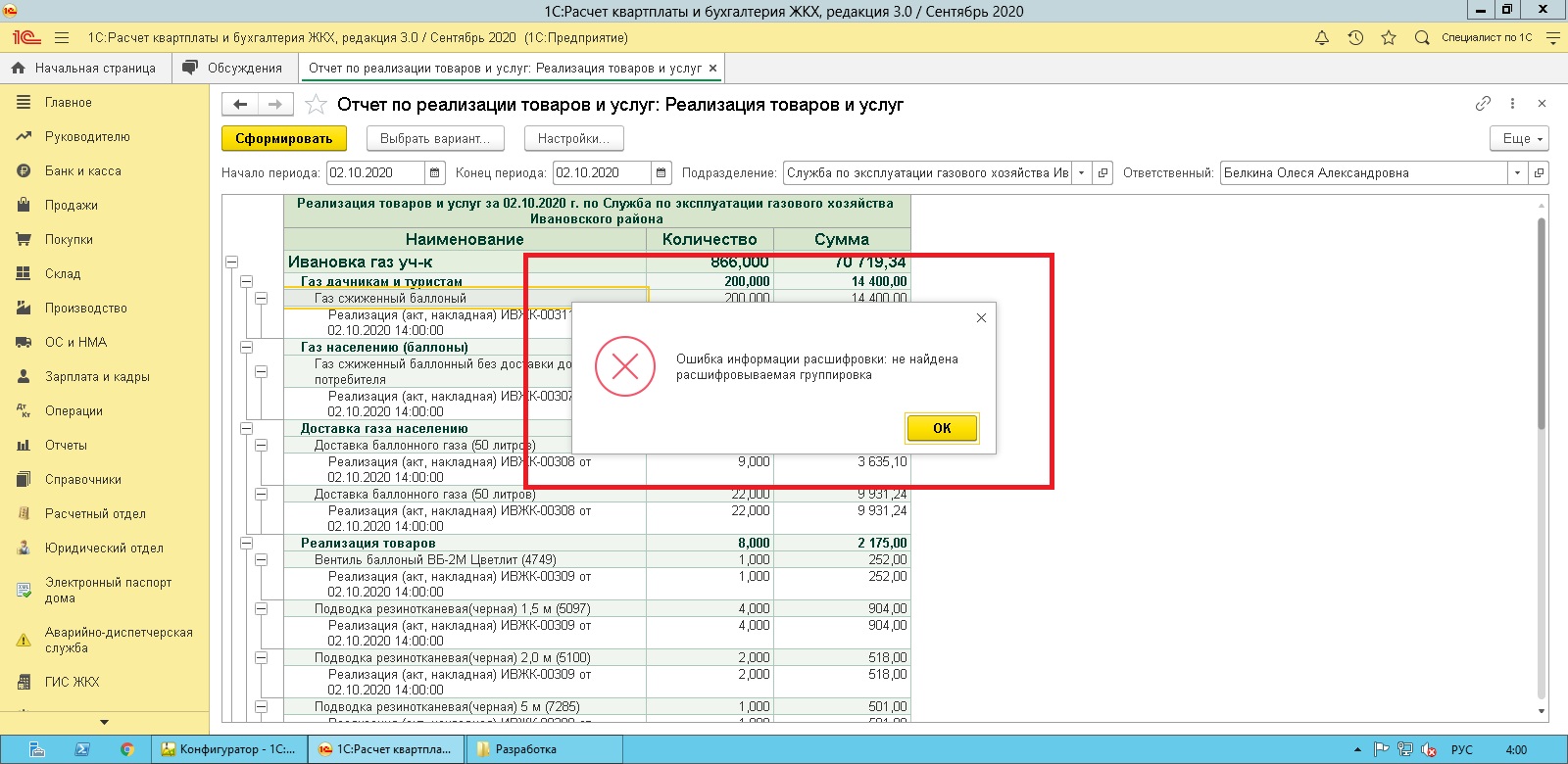 Исправить ошибку в отчет для 1С:Расчет квартплаты и бухгалтерия ЖКХ