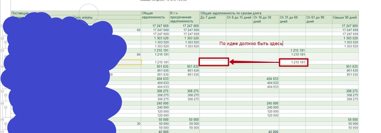 Отчет для БП 3.0, стандартный по задолженности поставщика по периодам, стоит задача периоды продлить на период Договор.СрокОплаты, т.е. если в договоре контрагента срок оплаты 90 дней, то задолженность считается от даты документа+90дней.