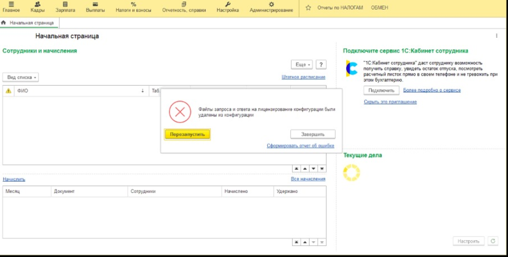 1С:ЗиУП 8. Базовая Файлы запроса и ответа на лицензировании конфигурации были удалены из...
