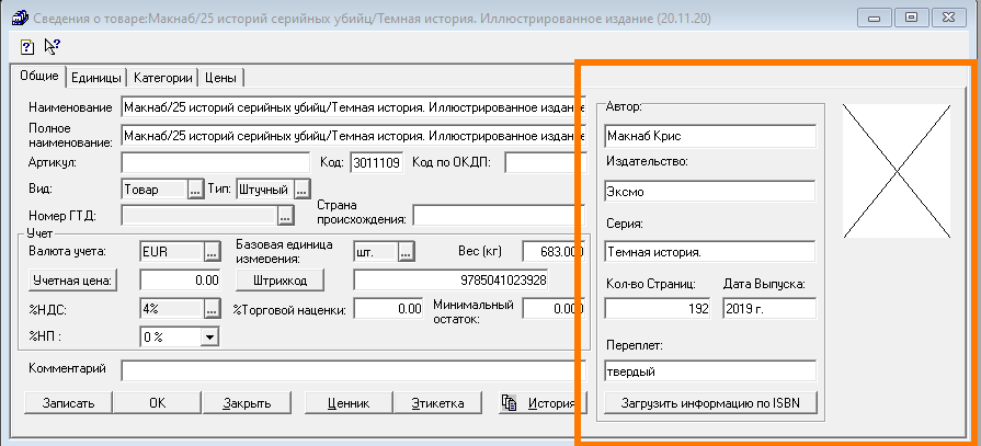 1.В карточке товара, по ISBN, подтягивается со стороннего сайта информация по товару: