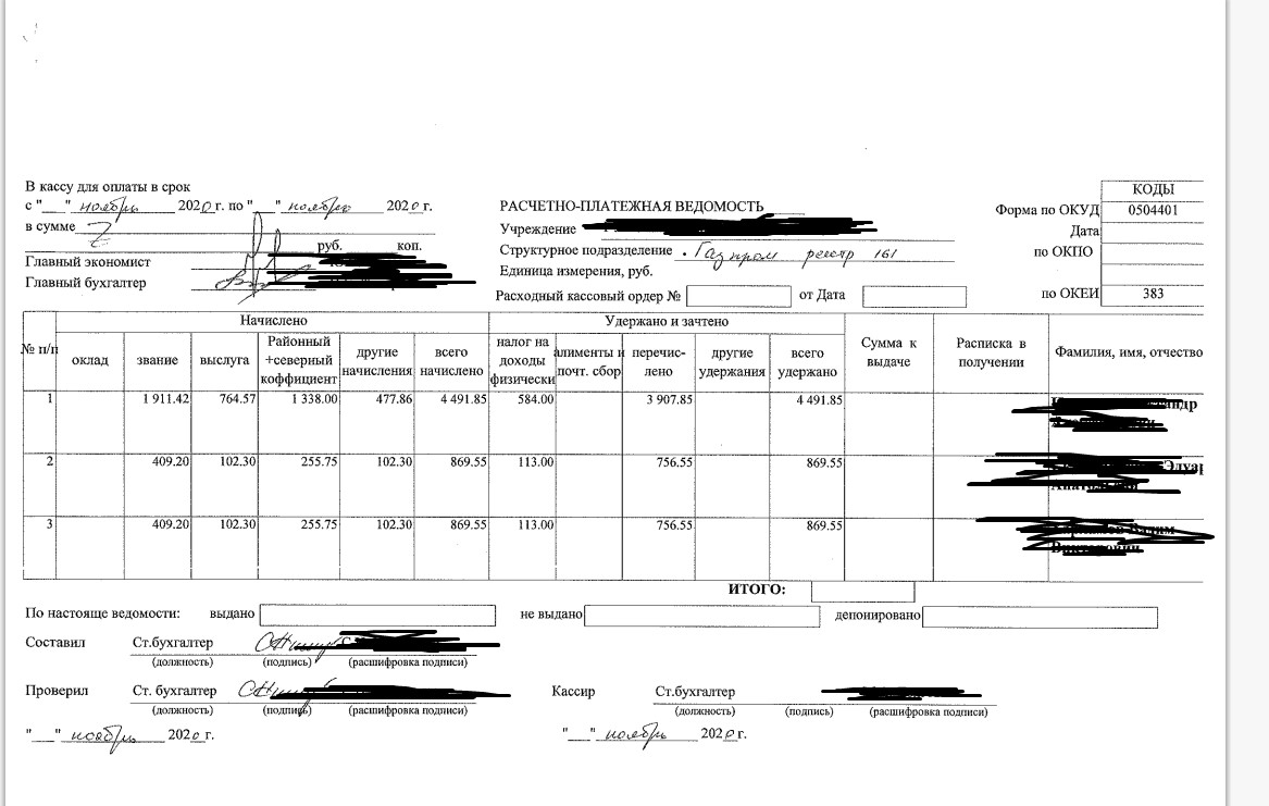 Доработать (или настроить) расчетно-платежную ведомость в соответствии с приложенным шаблоном (см. измененную шапку ведомости). ЗикГУ ред. 3.1