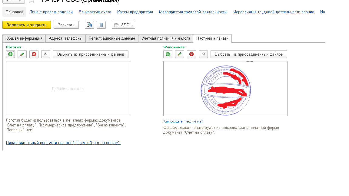 Добавить возможность в КА 2.4 в печатные формы добавлять отдельно подписи руководителя и печать
