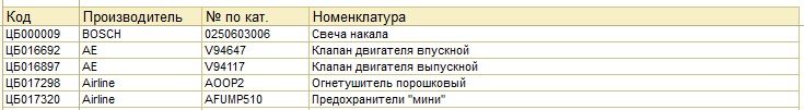 Требуется создание внешнего отчета, который будет выводить номенклатуру (код, производитель, № по каталогу, наименование), соответствующую условиям: