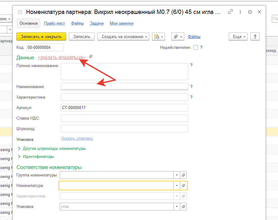 В текущей версии некорректно создаётся номенклатура поставщика (с пустыми полями).