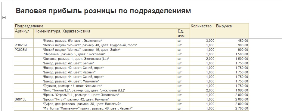 Есть отчет "Валовая прибыль розницы по подразделениям".