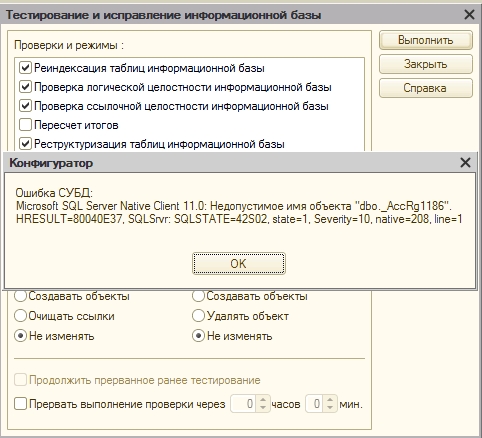 Есть база КА 1.1.115.1 на MSSQL 2012. Платформа 8.3.17.1851. База была восстановлена с битого массива RAID-5. Сама база открывается и в ней можно работать, но например ОСВ не формируется, выдается ошибка СУБД. Выгрузка аварийно завершается с ошибкой, тестирование и исправление тоже. 1С говорит об ошибках СУБД, возможно в базе MSSQL отсутствуют некоторые таблицы. Я пробовал накатить сверху cf от пустой базы с аналогичной конфигурацией, тоже не получилось. Нужно вернуть базу в рабочее состояние.
