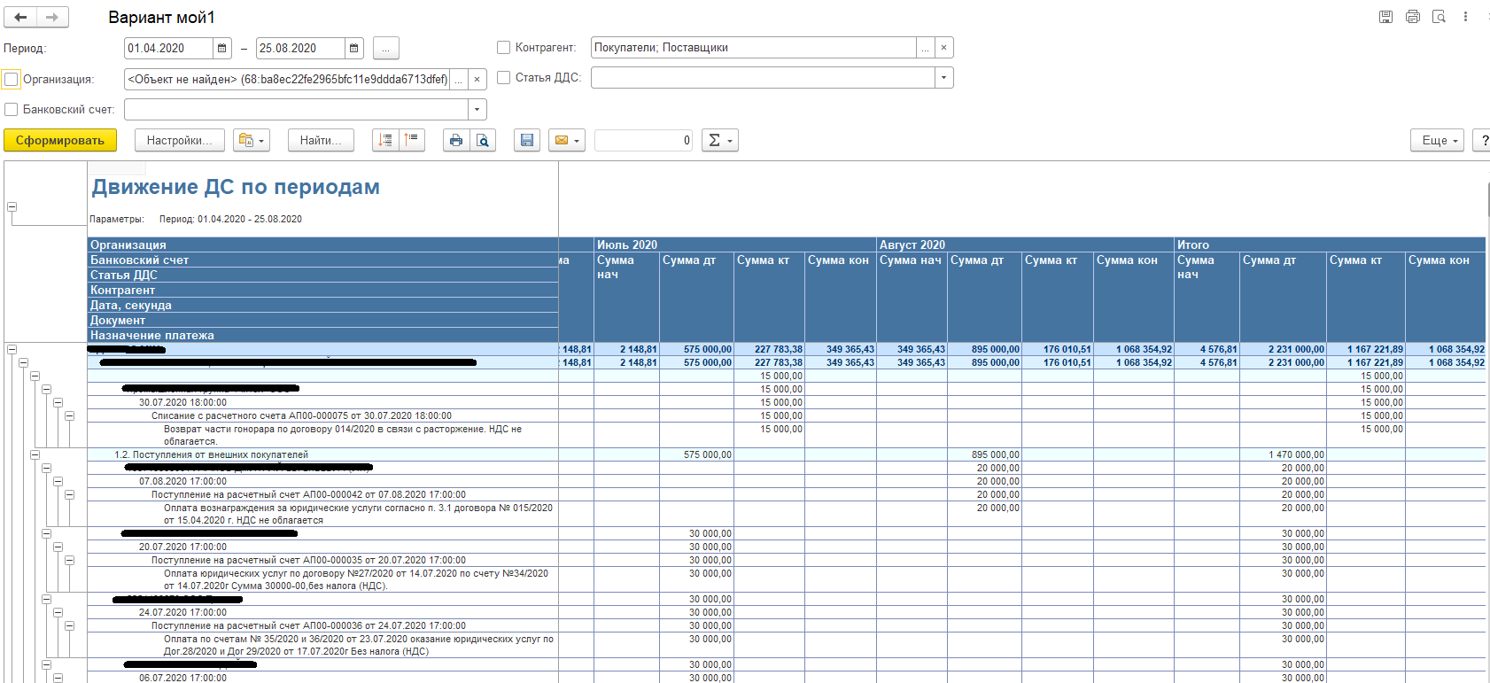 Формировать по организациям и статьям ДДС