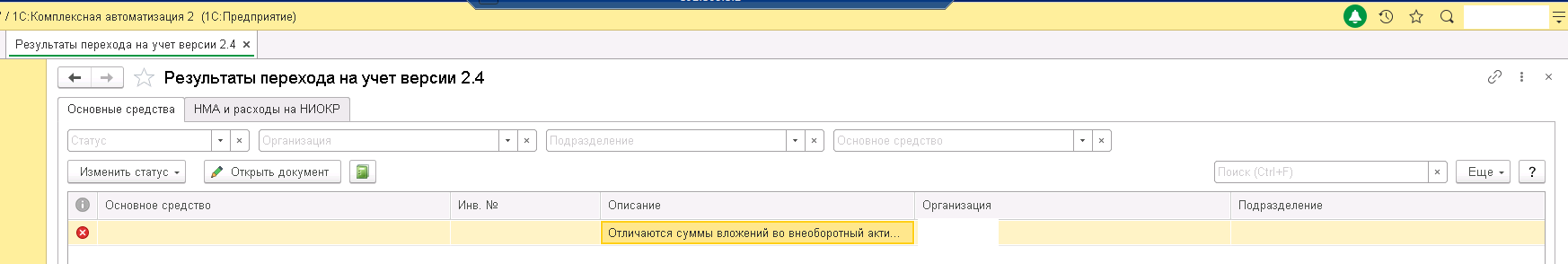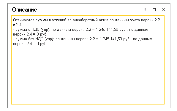 "Отличаются суммы вложений во внеоборотный актив по данным учета версии 2.2 и 2.4:"