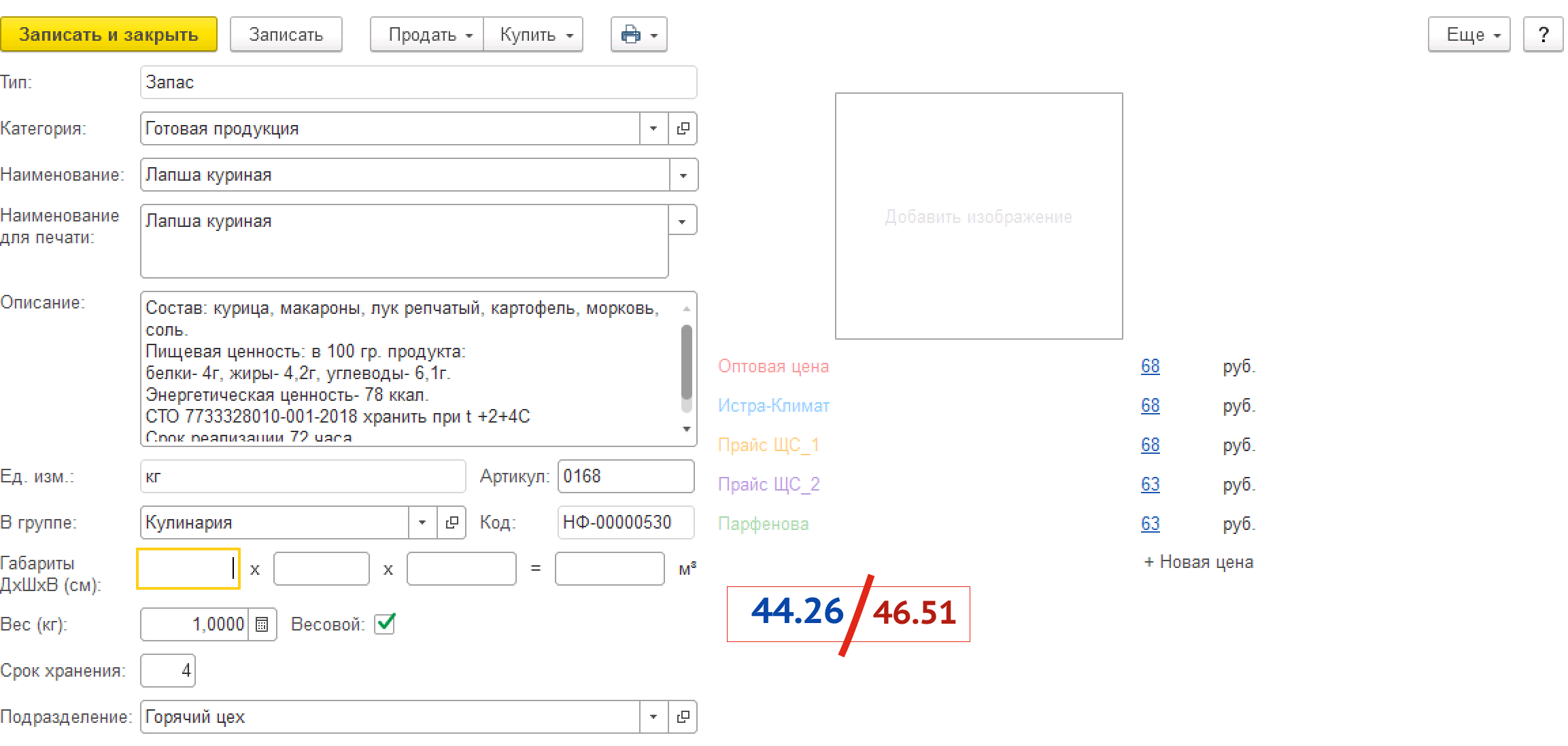 УНФ 1.6 Вывести в карточке товара текущую себестоимость.