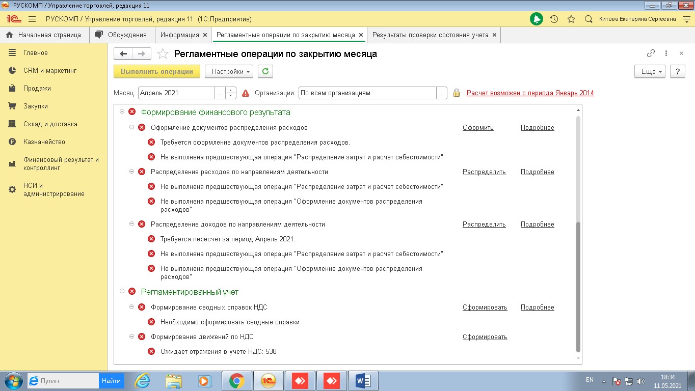 Добрый день! Необходимо закрыть период, база выдает ошибки. Список ошибок на скриншоте, база используется 10 лет, ранее период никогда не закрывался. Данные ранее 2020 года для работы не требуются, их можно удалить или сделать свертку. Бюджет обсуждается.