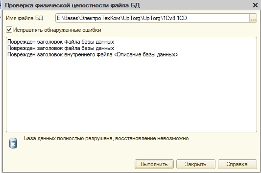 Восстановить поврежденную базу УТ ред 10. ошибки приложенны