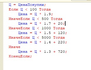 Нужна обработка для установки цен номенклатуры с градиентной наценкой (наценка по формулам ) в зависимости от цены закупки