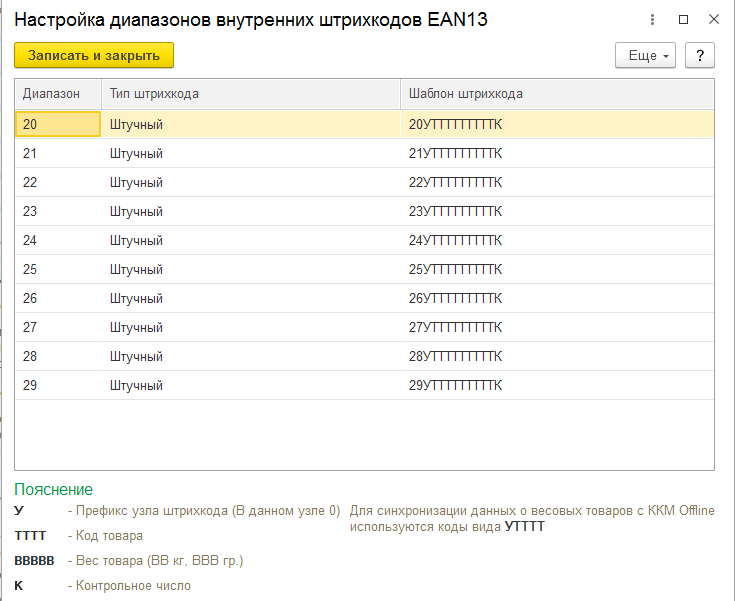 ут 11.4 в настройке диапазонов внутренних штрихкодов EAN13 изменить с 20,21,22,23 и так далее на 10,11,12, и так далее