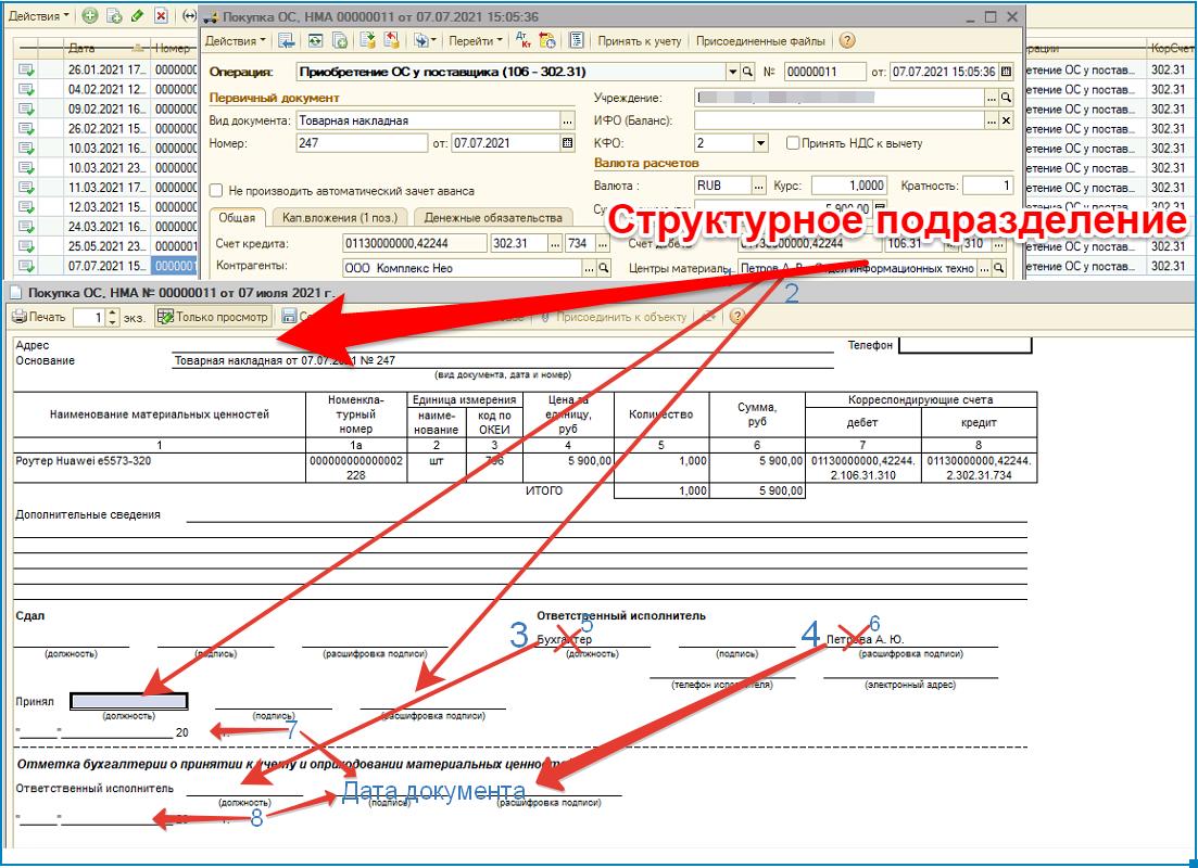 1) Заполнить в печатной форме "Структурное подразделение" данными из [Центры материальной ответственности].Подразделение